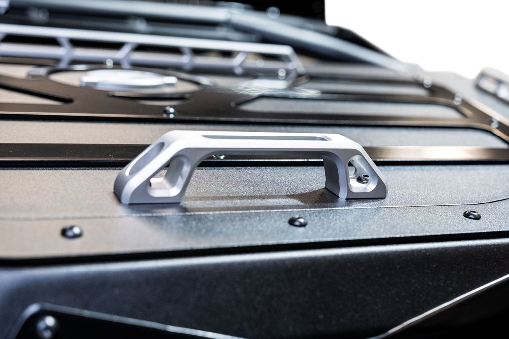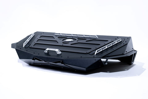 The Volt Series Baja Bed Box for the 2017+ Can Am X3 Maverick was designed to provide secure storage options. Dual latches keep the lid firmly closed on even the bumpiest of rides. The lid features smooth action when opening or closing thanks to dual gas struts. Additional tie-down rails allow for larger gear to be strapped down on top of the lid. The Can Am Baja Bed Box is finished in a hammer black powder coat, with satin black accent panels, and billet aluminum handles, rails, & badges. Installation is a straightforward bolt-on process.