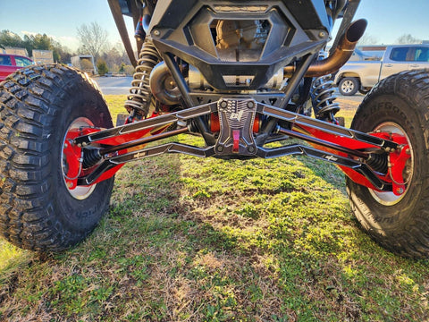 The lower rods provide an impressive 1" gain in ground clearance at the radius rod's peak, with over 2" in other key areas. Their front features a substantial 3/4" tall 45-degree ramped face, ensuring you smoothly conquer obstacles without getting stuck. Integrated gussets further reinforce these rods, preventing deflection during extreme bottom-outs and unusual impacts. We've incorporated the wide series of FK uniballs, specifically the WSSX12T, ensuring durability and performance. To prevent unnecessary movement while allowing for slight deflection when needed, we've utilized a unique set of spacers and o-rings on the frame side of the radius rods.