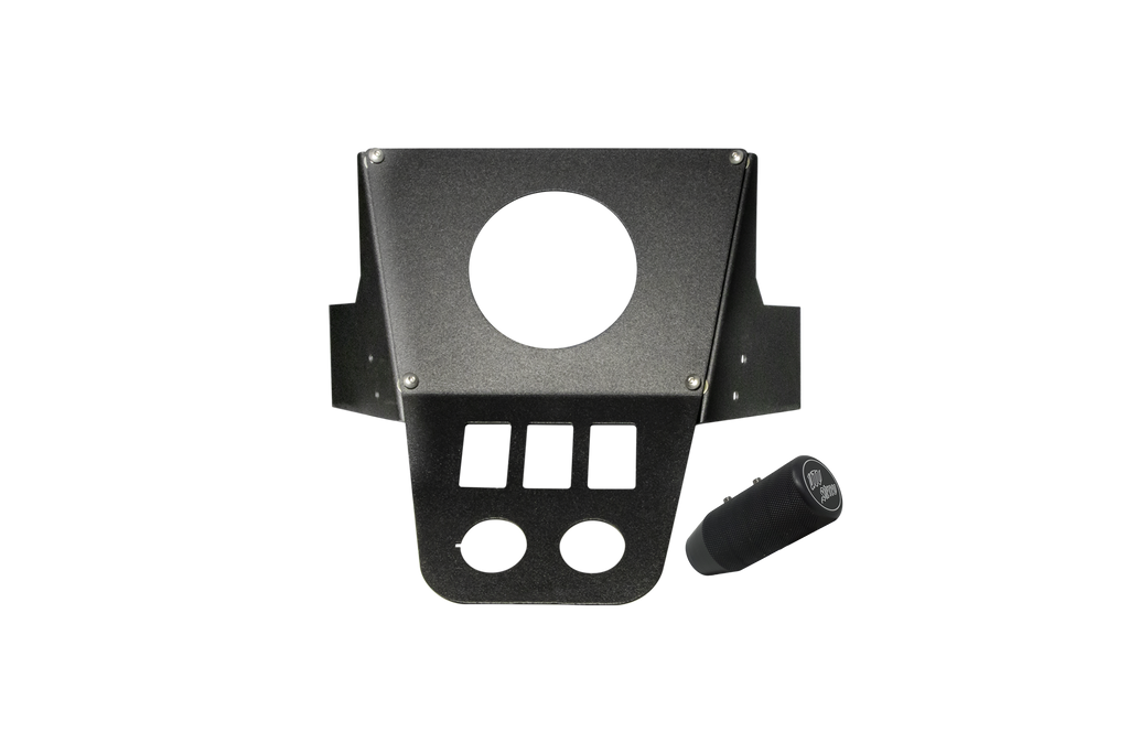 Featuring: (3x) Rocker Switch Cutouts, Billet Custom Engraved 'UTV STEREO' Shift Knob and Cutouts for USB/AUX & DC Outlet.