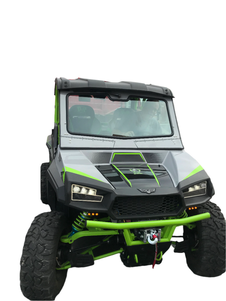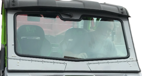 Every windshield we produce is made with Laminated Clear Safety Glass just like automobile glass. Each windshield has two independently working Vents which can be open or closed depending on the weather. The Aluminum Frames are Powder Coated in Textured Black which is more scratch resistant than standard smooth Powder Coats. Each windshield was templated by our team of fabricators using the best technology and equipment to get the best fit possible.