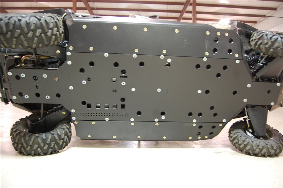 Get the best in under vehicle protection with Trail Armor's full skid plate set for the 2014 - 2020 Can Am Commander Max XT, Commander Max and Commander Max Limited. Made from a 1/2" supertough polymer, these skids are lighter than most traditional metal/aluminum skid plates and because they have no "impact memory", they absorb shocks to the bottom of your vehicle without the dents, galling and corrosion of metal/aluminum skids. Trail Armor was the first in the industry to design skids with the formed leading edges (front and rear) featured on our skid plates. These leading edges protect vulnerable frame edges and wheel wells from blunt edge impacts and act as a starting edge to slide over obstacles without the resistance and drag of metal skid plates. Additionally,Trail Armor skids are designed with extended side panels bent to serve as slider nerfs which protect the vulnerable sides and rocker panels of your vehicle. Compare Trail Armor's skid set coverage with other skid manufacturer's like items - slider nerfs are either sold separately or the bottom skid coverage ends before the rocker panel, leaving this part of your vehicle unprotected. Trail Armor's skid plates come in easy to install panels that cover the full length and breadth of the vehicle, including the front and rear differential. Lap jointed panels create a continuous single smooth sliding surface - not stacked like other manufacturers skids with hard edges to create a catch point. Access holes to service points and oil drains make maintenance a breeze. Strategically placed drain holes allow dirt and debris to wash out - you don't have to remove them to clean out the belly your vehicle. However, if needed, individual panels may be removed to access different areas without removing the entire skid plate. Recessed mounting holes protect fasteners from damaging blows and keeping all bolt heads from protruding the skid's surface. All kits come with corrosion resistant hardware and photo-documented installation instructions. Installation videos, if available, are provided as a YouTube video on our site. COLORS ARE CONSIDERED A SPECIAL ORDER AND ARE NON-RETURNABLE. THEY ARE NOT PIGMENT MATCHED TO ANY OEM MANUFACTURER'S COLOR SCHEME. PLEASE CONTACT US FOR ANY QUESTIONS ON MATCHING OR BLENDING WITH YOUR VEHICLE'S PLASTIC AND/OR GRAPHICS.