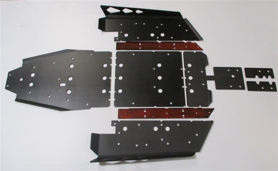 Get the best in under vehicle protection with Trail Armor's full skid plate set for the Can Am Maverick X3 Turbo, X3 X DS Turbo R, X3 X RS Turbo R, X3 X MR Turbo, X3 X RC Turbo, X3 DS Turbo RR, X3 X DS Turbo RR, X3 X MR Turbo RR, X3 X RS Turbo RR, X3 X RC Turbo RR, X3 X RS Turbo RR Smart Shox, X3 X DS Turbo RR Smart Shox,X3 DS Turbo, X3 X RC Turbo RR, X3 X MR Turbo RR, X3 RS Turbo RR. PLEASE SEE ALSO FITS CHART IN GALLERY FOR SPECIFIC YEAR AND MODEL FITMENT. Made from Super Tough polymer, these 1/2" plastic skids are lighter than most traditional metal/aluminum skid plates and because they have no "impact memory", they absorb shocks to the bottom of your vehicle without the dents, galling and corrosion of metal/aluminum skids. Because our skid plates are made from the 1/2" material with unmatched impact strength, there is no need for any extra add ons to provide all you need to protect to the open areas of your X3. Trail Armor was the first in the industry to design skids with the formed leading edges (front and rear) featured on our skid plates. These leading edges protect vulnerable frame edges and wheel wells from blunt edge impacts and act as a starting edge to slide over obstacles without the resistance and drag of metal skid plates. Additionally,Trail Armor skids are designed with extended side panels bent to serve as slider nerfs which protect the vulnerable sides and rocker panels of your vehicle. Compare Trail Armor's skid set coverage with other skid manufacturer's like items - slider nerfs are either sold separately or the bottom skid coverage ends before the rocker panel, leaving this part of your vehicle unprotected. Trail Armor's skid plates come in easy to install panels that cover the full length and breadth of the vehicle, including the front and rear differential. Trail Armor skids for the X3 are formed to extend out and around the vulnerable belt housing while still allowing easy access for belt maintenance without removing the skids. Trail Armor's signature lap jointed panels create a continuous single smooth sliding surface - not stacked like other manufacturers skids with hard edges to create a catch point. Access holes to service points and oil drains make maintenance a breeze. Strategically placed drain holes allow dirt and debris to wash out - you don't have to remove them to clean out the belly your vehicle. However, if needed, individual panels may be removed to access different areas without removing the entire skid plate. Recessed mounting holes protect fasteners from damaging blows and keeping all bolt heads from protruding the skid's surface. All kits come with corrosion resistant hardware and photo-documented installation instructions. Installation videos, if available, are provided as a YouTube video on our site. Standard sliders roll up the sides as shown in the product picture. They act as a nerf bar protecting the sides of the rocker panels. Trimmed sliders extend past the bottom of the rocker panels about an inch but do not turn up the side. You can use OEM tubular nerf bars with trimmed sliders. COLORS ARE CONSIDERED A SPECIAL ORDER. THEY CANNOT BE CANCELLED OR RETURNED ONCE ORDERED. IF YOU HAVE ANY QUESTIONS ABOUT COLORS AND YOUR GRAPHICS, PLEASE CONTACT US.