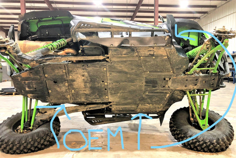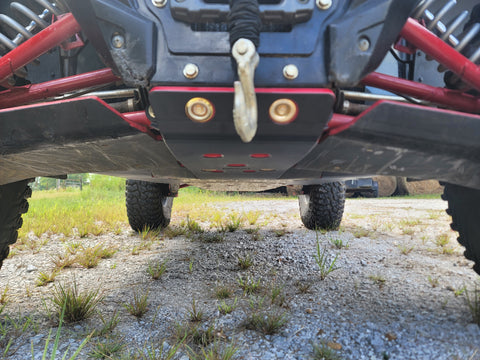 Experience exceptional underbody protection with Trail Armor’s full skid plate set designed for the 2023 - 2025 Kawasaki KRX 1000 (all editions). Constructed from 1/2" Super Tough polymer, these skids are lighter than conventional metal or aluminum plates and absorb impacts without corrosion or galling thanks to their lack of "impact memory." Trail Armor pioneered the use of formed front leading edges that shield sensitive frame corners and wheel wells, enabling smooth obstacle traversal without the drag associated with metal skids. The integrated extended side skid plates offer enhanced protection to vulnerable side panels, surpassing competitor coverage where such plates are often sold separately or missing. Panels are modular and cover the full underside including front and rear differentials. Convenient access holes for maintenance and strategically placed drain holes keep debris from accumulating without removal of the skids. Recessed mounting holes safeguard fasteners from damage and ensure a flush surface. The kits come with corrosion-resistant hardware, comprehensive photo instructions, and two Panel A options—one designed for use with a bumper and the other offering enhanced skid protection at the front of the vehicle. Some OEM hardware may be reused. Note: A-arm guards shown in images are sold separately (part numbers TA012ARMIMPFG-KAW-KRX and TA012IMPTAG-KAW-KRX). Custom colors are special order, non-returnable, and not matched to OEM hues. Refer to the Fitment Guide for exact model compatibility.
