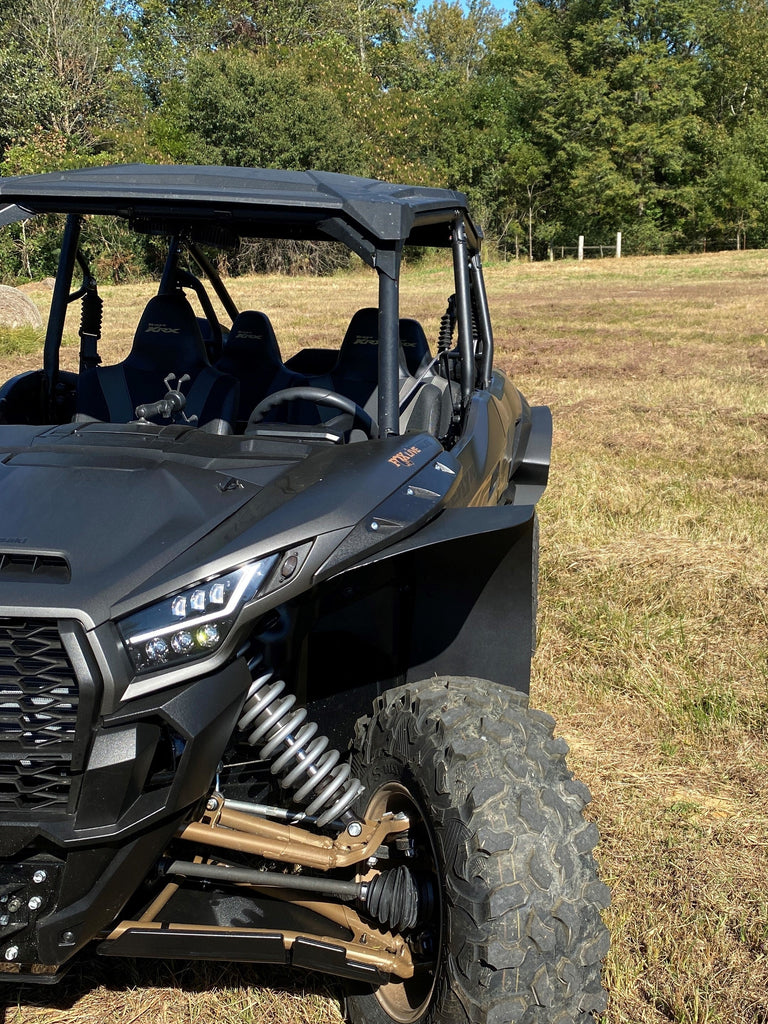 Extends the factory fender of the 2020 - 2025 Kawasaki KRX 1000 to protect you from mud splash. Greater coverage in the rear than other mud flaps on the market. See also fits chart in gallery for more specific model info.