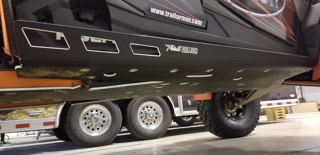 Get the best in under vehicle protection with Trail Armor's full skid plate set for the Polaris Polaris RZR XP 1000 (including the High Lifter, Trails and Rocks, Sport, Premium, Ultimate Editions), RZR XP Turbo, RZR 1000 XP Turbo S and Turbo S Velocity. Made from 1/2" supertough polymer, these plastic skids absorb shock to the bottom of the vehicle with no dents or rust and are lighter than traditional metal skids (see weight comparison below). Strategically placed drain holes allow dirt and debris to wash out - you don't have to remove them to clean out the belly your vehicle. They come in easy to install jointed sections that cover the full length and breadth of the vehicle, including the front and rear differential. Trail Armor's full skid plate set for the Polaris RZR XP 1000 provides additional rear coverage to protect your rear radius rods (not the trailing arms). For trailing arm and front a-arm protection, see product code TA012ARMIMPFG-RZR1000 and TA012ARMTAG-RZR1000 (shown in picture installed on machine, sold separately - WILL NOT FIT THE RZR XP TURBO S, see part # TA012ARMIMPFG-RZRTURBO-S and TA012IMPTAG-RZRTURBO-S). Bumpers will mount to outside of skid plate with customer-provided longer bolts.  COLORS ARE CONSIDERED A SPECIAL ORDER AND ARE NON-RETURNABLE.  THEY ARE NOT PIGMENT MATCHED TO ANY OEM MANUFACTURER'S COLOR SCHEME.  PLEASE CONTACT US FOR ANY QUESTIONS ON MATCHING OR BLENDING WITH YOUR VEHICLE'S PLASTIC AND/OR GRAPHICS. Standard Sliders Option - Includes Trail Armor's extended side panels that serve as nerf sliders to protect the bottom and sides of the rocker panels of your vehicle. Trimmed Sliders Option - Includes Trail Armor's sliders that protect the bottom of the rocker panels and works with the Pure Polaris Extreme Kick-out Steel Rock Sliders (sold separately).Please specify Option for sliders. Mounting hardware and instructions included. Ships UPS ground - no truck line needed!  You must specify year and model as the 2016+ models have a different rear panel and spacer.  See ALSO FITS chart in gallery for specific year and model fitment.