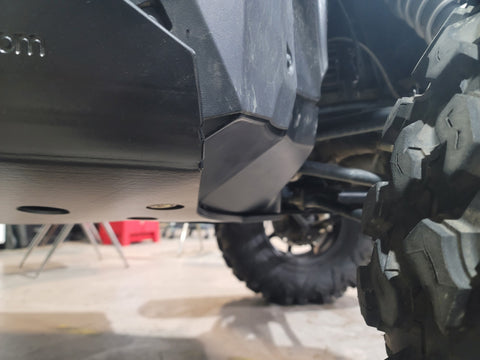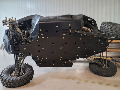 Protect your Polaris RZR XP Pro (2020–2025 models, including Standard, Premium, Ultimate, Sport, and Limited Edition) with Trail Armor’s complete skid plate system. Constructed from 1/2" super tough polymer, these lightweight skids absorb impacts without denting or rusting, outperforming metal alternatives. Drain holes are strategically positioned to flush out dirt without removal. The set installs in sections, covering the underside fully—including front and rear differentials—with access points for servicing grease fittings. Mounting hardware and instructions are included.  You may reuse OEM hardware. Choose between Standard Sliders, featuring extended side panels for rocker protection, or Trimmed Sliders designed to pair with Pure Polaris Extreme Kick-out Steel Rock Sliders. Refer to the Fitment Guide for detailed compatibility. Note that custom colors are special orders, non-cancellable and non-returnable—contact us for color or graphics inquiries.