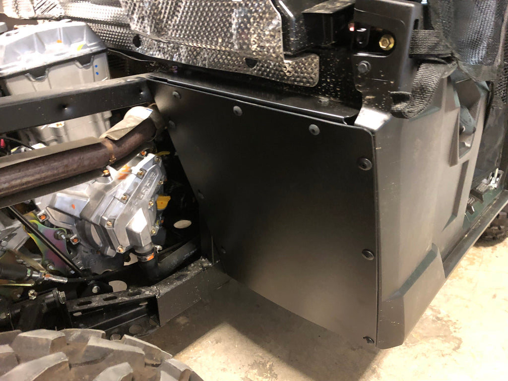 Tired of your tires caking mud in that impossible-to-clean honeycomb under yourRanger Midsize 570, Ranger Midsize 570 Crew and Ranger Midsize 500's dump bed and rear fender panels? Trail Armor's under bed mud shields with fender enclosurs fit over those problem areas on the underside of your bed and in front of your tires to keep the mud out AND they feature fender extensions to keep the mud off your vehicle. Made from 1/8" thick plastic, these panels are custom cut to fit and will not interfere with dumping capability. Fender extensions provide approximately 4" of coverage from the vehicle body. Fits 2014 - 2021 Ranger Midsize 570, 2019 - 2021 Ranger Midsize Crew and Ranger Midsize 500 2017 - 2021. See ALSO FITS CHART in Gallery for year and model specifics.