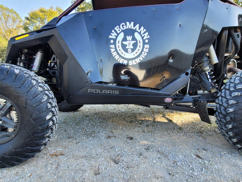 Protect your 2022 - 2024 Polaris Turbo R with Trail Armor’s full skid plate set, crafted from 1/2" super tough polymer. These skids offer excellent shock absorption, long-lasting surface durability without rust, and are lighter than metal counterparts. Drain holes are positioned to let debris wash away easily without removal. The kit includes multiple sections covering the underside, including front and rear differentials, with access points for servicing grease fittings and oil drains. Choose between Standard Sliders for extended rocker panel coverage or Trimmed Sliders, compatible with Pure Polaris Rock Sliders. Installation hardware and instructions are included. Some factory hardware may be reused. Shipping is via UPS ground with applicable large package fees. Color options are special order and non-returnable. These sliders do not feature any engraving—the included tri-color image illustrates the color contrast. Front A-arm Guards, Trailing Guards and Mud Flaps displayed here are available for purchase separately. Refer to Product #'s TA012ARMIMPFG-PROR, TA012IMPTAG-TURBOR, TAMFFE-PROXP for details. Consult the Fitment Guide for exact vehicle compatibility.