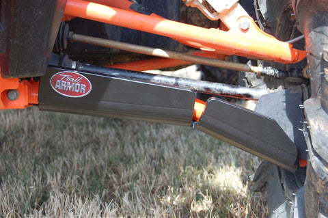 Break bad on the trail, ride the most buggy-busting terrain you can find - Trail Armor's a-arm guards can take the iMPACT! Made of the same 1 /2" Super Tough polymer we make our skid plates out of, these are by far the toughest, best designed and coolest a-arms on the market. Guards have three sided protection of your front CV boots - front, rear and bottom - and mount easily with no drilling required and are specially designed for the arched front a-arms of the Polaris High Lifter, Desert Edition, Polaris Rock Crawler Edition RZR XP 1000s amd RZR 4 XP 1000. All mounting hardware and simple photo-documented installation instructions are included. Rear Trailing Guards sold separately - part # TA012IMPTAG-RZR1000. NOTE: These a-arm guards fit the Polaris Highlifter a-arms that come factory on the Desert Edition and the Polaris Trails and Rocks Edition. Will not fit aftermarket Highlifter a-arms. Colors are considered a special order. They can't be cancelled once ordered and are non-returnable. They are not pigment matched to any OEM color/graphic scheme. If you have any questions about your graphic package and colors, please contact us. See ALSO FITS CHART in gallery for specific year and model fitments.
