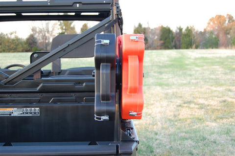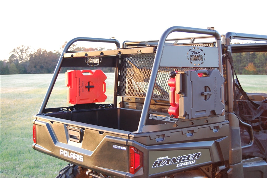 Trail Armor's mount for the Ranger and General is the only true all-in-one kit you need. These mounts can be used in a variety of configurations and locations - 1.75 gallon packs, 3 gallon packs, 4 gallon packs, singles, doubles, with a rack, without a rack, on the bed side rails, on the bed front - the options are limitless. Kit comes with 1 Trail Armor mount, 2 camlocks, and 1 Standard Pack Mount.