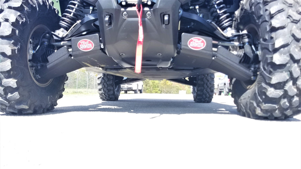 Get the best in under vehicle protection with Trail Armor's full skid plate set for the 2021 - 2025 Yamaha Wolverine RMAX2, RMAX2 1000 X-TR, RMAX2 1000 LT Edition, and RMAX21000 Sport. Made from our own custom blend of ultra high molecular weight polymer, these 1/2" plastic skids are lighter than most traditional metal/aluminum skid plates and because they have no "impact memory", they absorb shocks to the bottom of your vehicle without the dents, galling and corrosion of metal/aluminum skids. Trail Armor was the first in the industry to design skids with leading edges (front and rear) featured on our skid plates. These leading edges protect vulnerable frame edges and wheel wells from blunt edge impacts and act as a starting edge to slide over obstacles without the resistance and drag of metal skid plates. Additionally, these skids for the RMAX2 are designed side panels that extend approximately a 1/2" past the rocker panels to protect the vulnerable sides and rocker panels of your vehicle. Compare Trail Armor's skid set coverage with other skid manufacturer's like items - slider nerfs are either sold separately or the bottom skid coverage ends before the rocker panel, leaving this part of your vehicle unprotected. Trail Armor's skid plates come in easy to install panels that cover the full length and breadth of the vehicle, including the front and rear differential. They install directly over the existing metal factory skid plate. Access holes to service points and oil drains make maintenance a breeze. Strategically placed drain holes allow dirt and debris to wash out - you don't have to remove them to clean out the belly your vehicle. However, if needed, individual panels may be removed to access different areas without removing the entire skid plate. Recessed mounting holes protect fasteners from damaging blows and keeping all bolt heads from protruding the skid's surface. All kits come with corrosion resistant hardware and photo-documented installation instructions. Installation videos, if available, are provided as a YouTube video on our site. A-Arm guards if shown installed in pictures are not included and sold separately. Colors are not matched to any OEM graphic package. Colors are considered a special order and are non-returnable. Please see Also Fits Chart in gallery for specific year and model fitment.