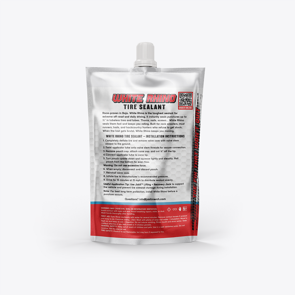 Race proven in Baja!   WHITE RHINO tire sealant is a toughest sealant for extreme off-road and daily driving It instantly seals punctures up to 1/2 inch and tubeless tires and tubes. Thorns and screws? WHITE RHINO Tire Sealant seals them fast and keeps you rolling. Built for UTVs/ATVs, sand cars, rock crawlers, mud runners, trail and backcountry hunters those who refuse to get stuck on the trail gets brutal white rhino keeps you moving.